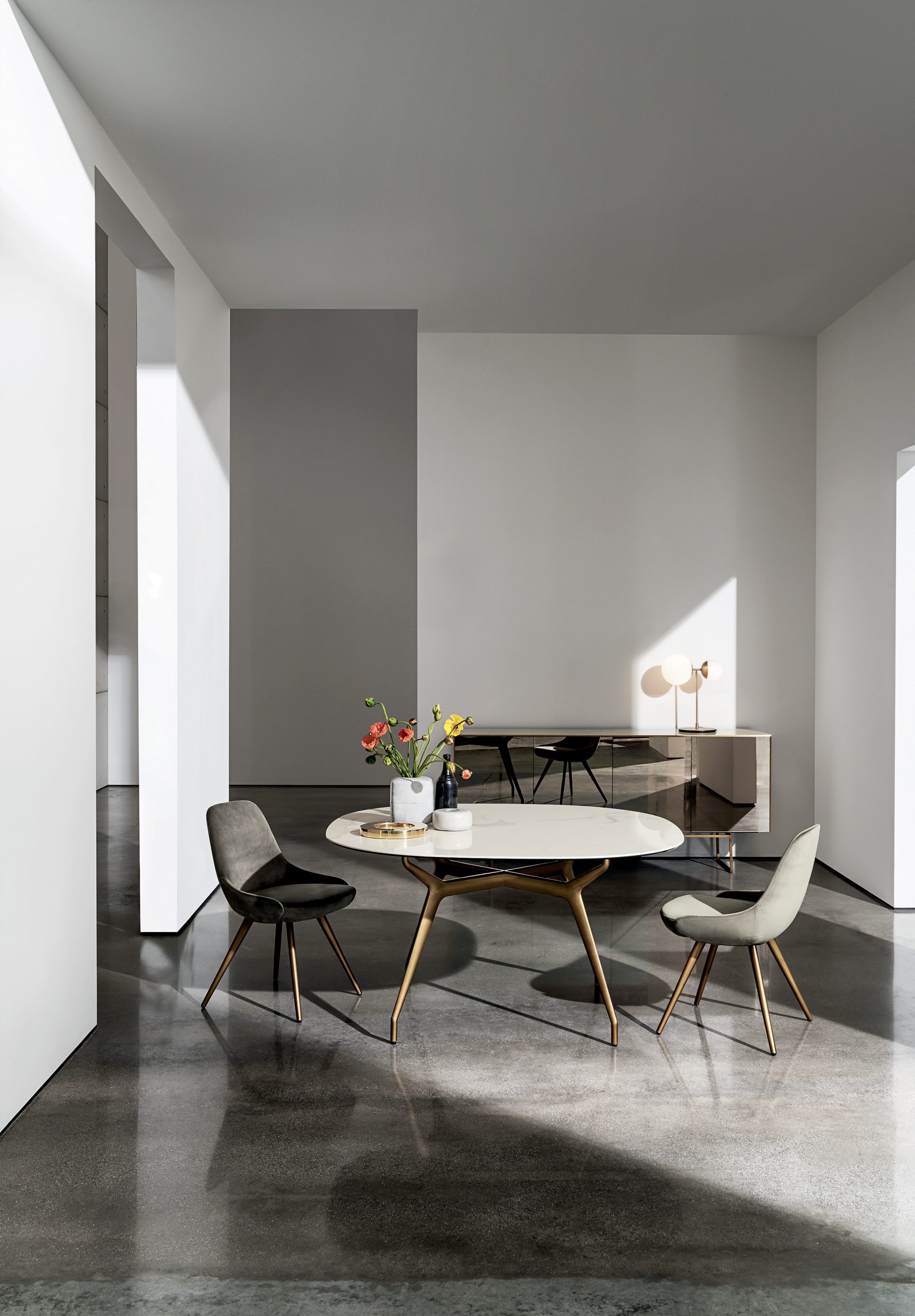 Sovet Italia Arkos ruokapöytä on moderni italialainen design ruokapöytä, jossa yhdistyvät arkkitehtoninen jalustarakenne ja huippuluokan materiaalit. Pöydän tunnusomainen metallijalusta luo ilmavan, mutta vahvan ilmeen – tehden siitä ruokailutilan keskipisteen.