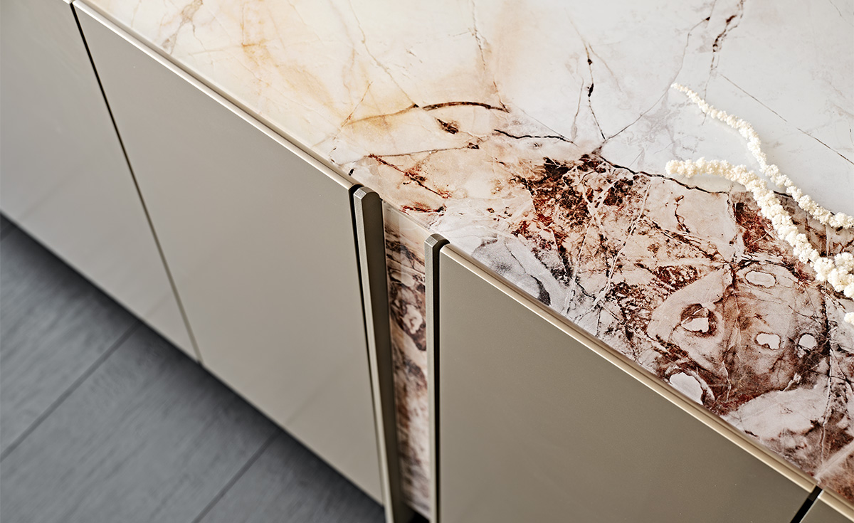 Cattelan Italia Dynasty  -senkki tuo tilaan modernin, ylellisen ilmeen ja näyttävän yhdistelmän materiaaleja ja muotoa. Titaaninvärinen puinen runko, kansi ja etuosan yksityiskohta taidelasia tai peilimäinen bronze-lasi. Sisäpuolella lasihyllyt.