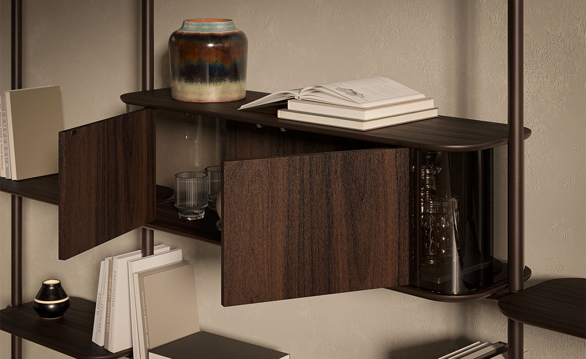 Cattelan Italia Harbour -kirjahylly on modulaarinen ja ylellinen säilytysjärjestelmä, joka yhdistää taidokkaasti puun, metallin ja lasin. Se on suunniteltu sekä käytännölliseksi säilytysratkaisuksi että näyttäväksi sisustuselementiksi.