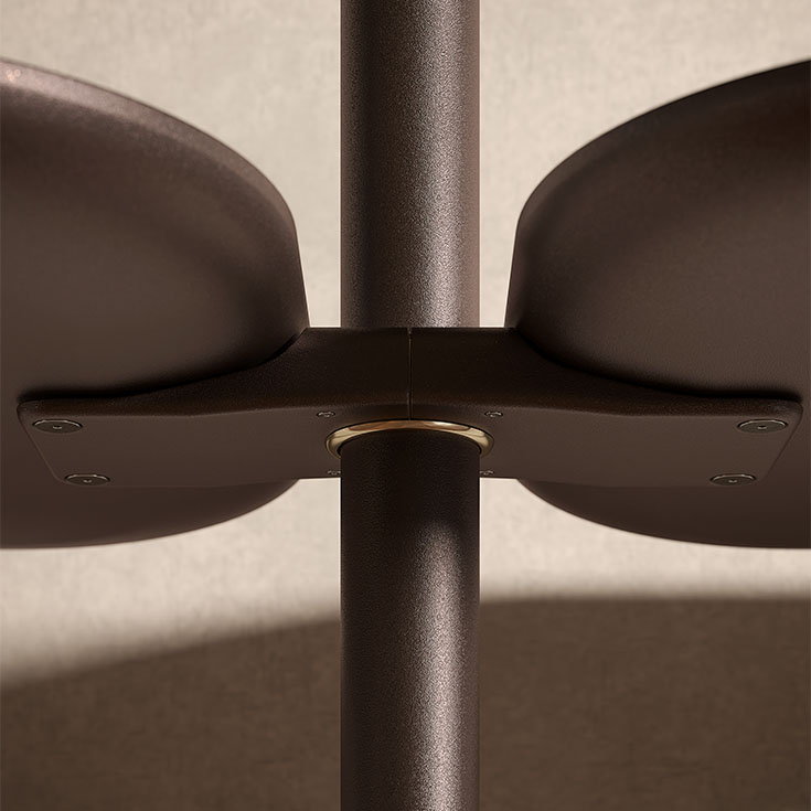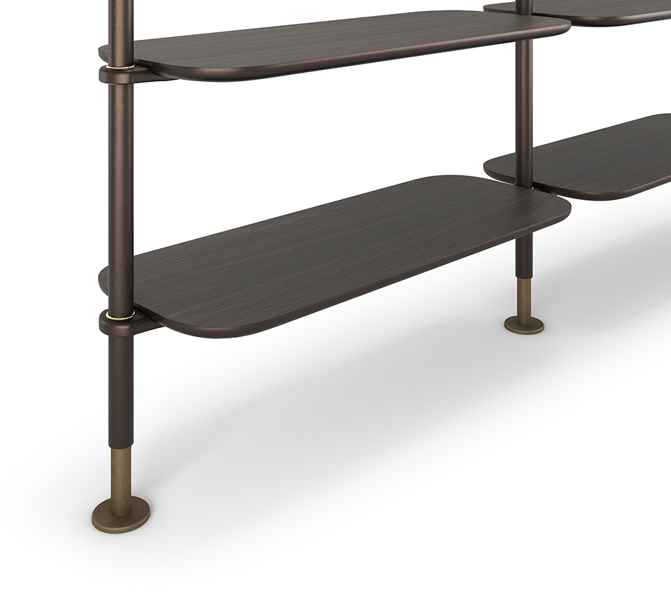 Harbour on suunniteltu modulaariseksi, joten se voidaan asentaa seinään tai kattoon, joko seinää vasten tai tilanjakajaksi. Tämä mahdollistaa joustavan sijoittelun erilaisiin tiloihin. Hyllyjen alareunat on muotoiltu sisäänpäin kaartuviksi, mikä antaa niille elegantin ja veistoksellisen ilmeen. Messinkiviimeistellyt kiinnitysrenkaat ja pylväiden päät korostavat huolellista viimeistelyä.