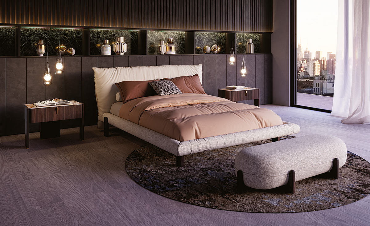 Cattelan Italia Pascal -sänky on modernin makuuhuoneen keskipiste, jossa yhdistyvät näyttävä muotoilu ja täydellinen mukavuus. Korkea pehmustettu pääty, runko nousee lattiasta tehden sängystä ilmavan ja keveän. Valitse verhoiluksi ylellinen nahka, pehmeä kangas tai micro-nubuk – tai yhdistä materiaaleja päätyyn ja runkoon oman tyylisi mukaan. Jalat sävytettyä tammea tai saarnipuuta sävyissä Titanium tai Bronze. Nahkahihnat, jotka yhdistävät päädyn runkoon, viimeistelevät kokonaisuuden tyylillä.