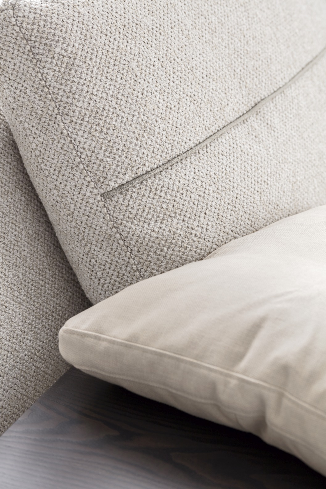 Sohva on saatavilla nahka- tai kangasverhoiltuna. Istuin- ja selkätyynyt on suunniteltu tarjoamaan erinomaista istumamukavuutta. Tyynyjen täytteet ja rakenne takaavat miellyttävän istumakokemuksen pitkäänkin oleskeluun.