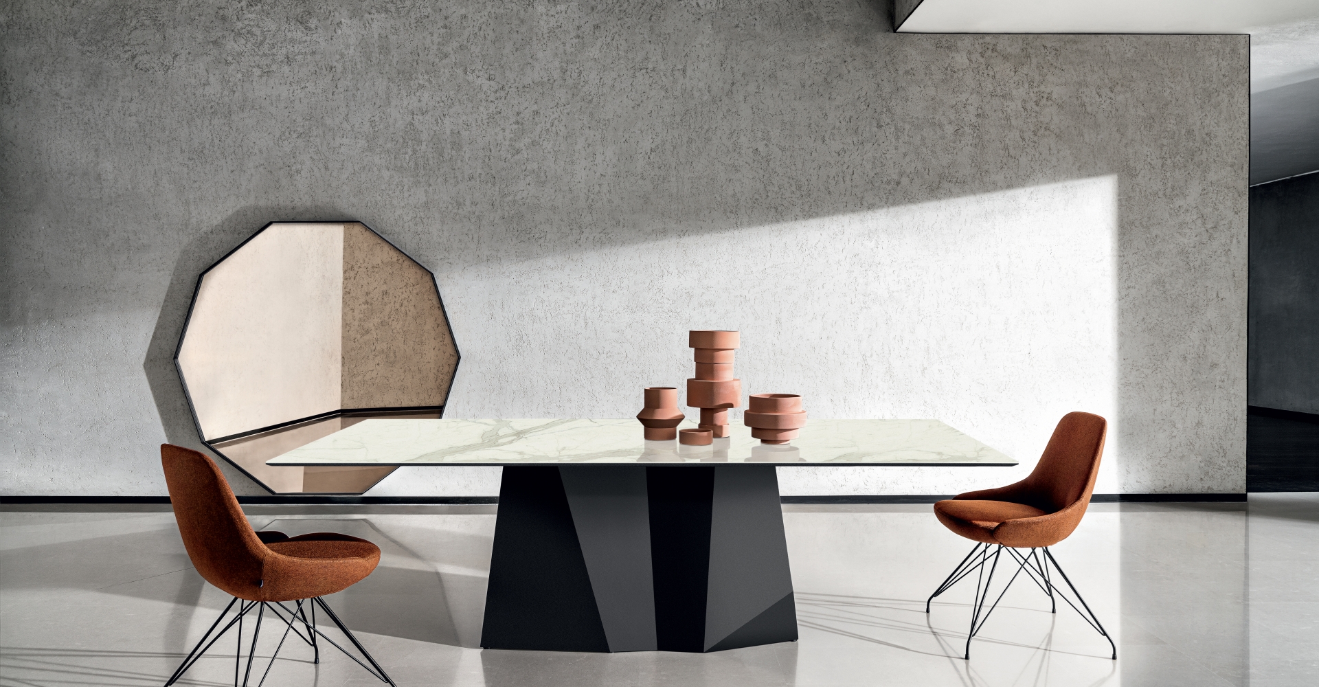 Sovet Italian GrandDeod -pöytä on moderni ruokapöytä, joka sopii monenlaisiin sisustuksiin. Pöydän muotoilu on saanut inspiraationsa Dolomiittien veistoksellisista linjoista, mikä ilmenee sen ikonisen jalustan muodoissa.