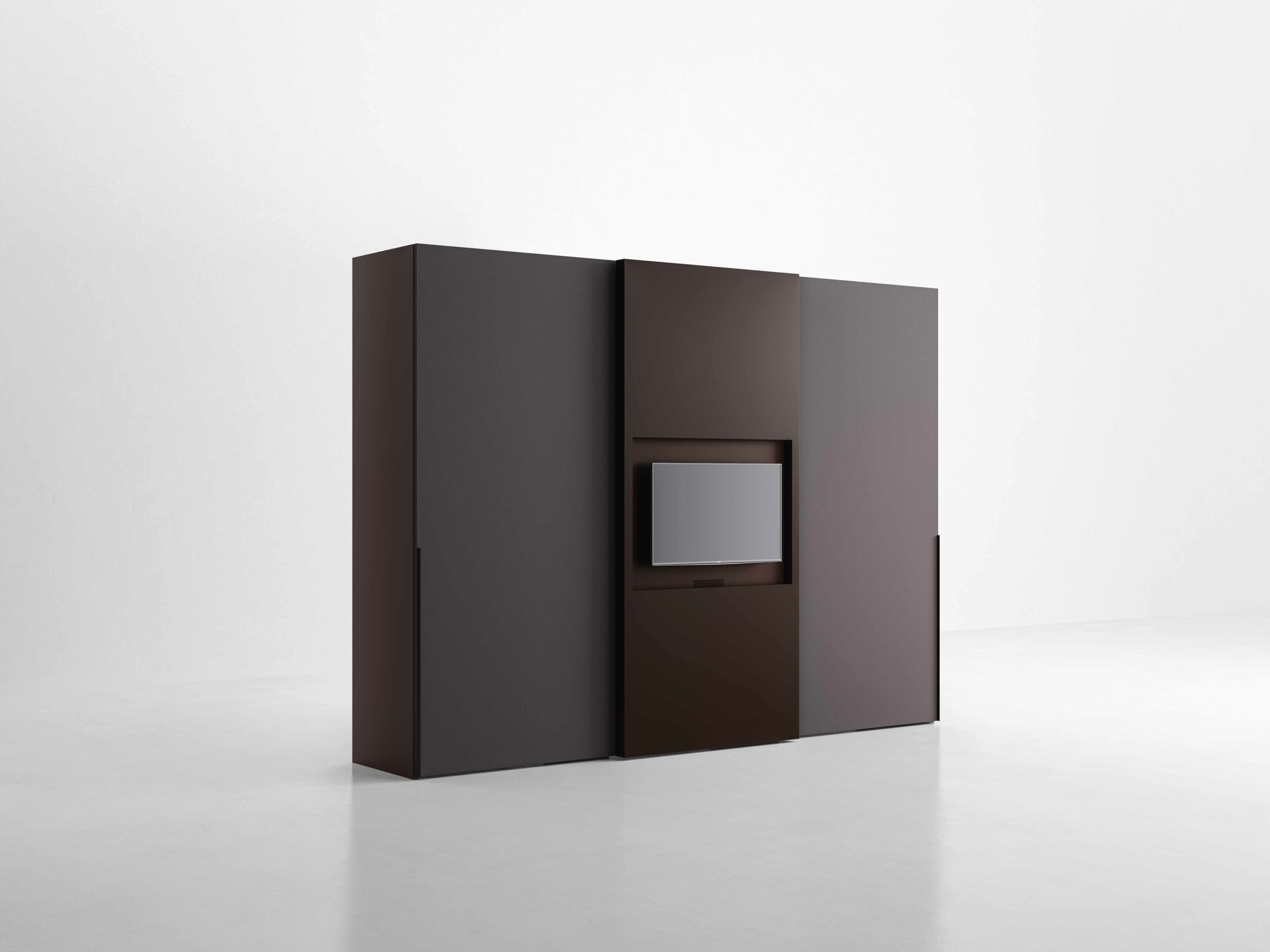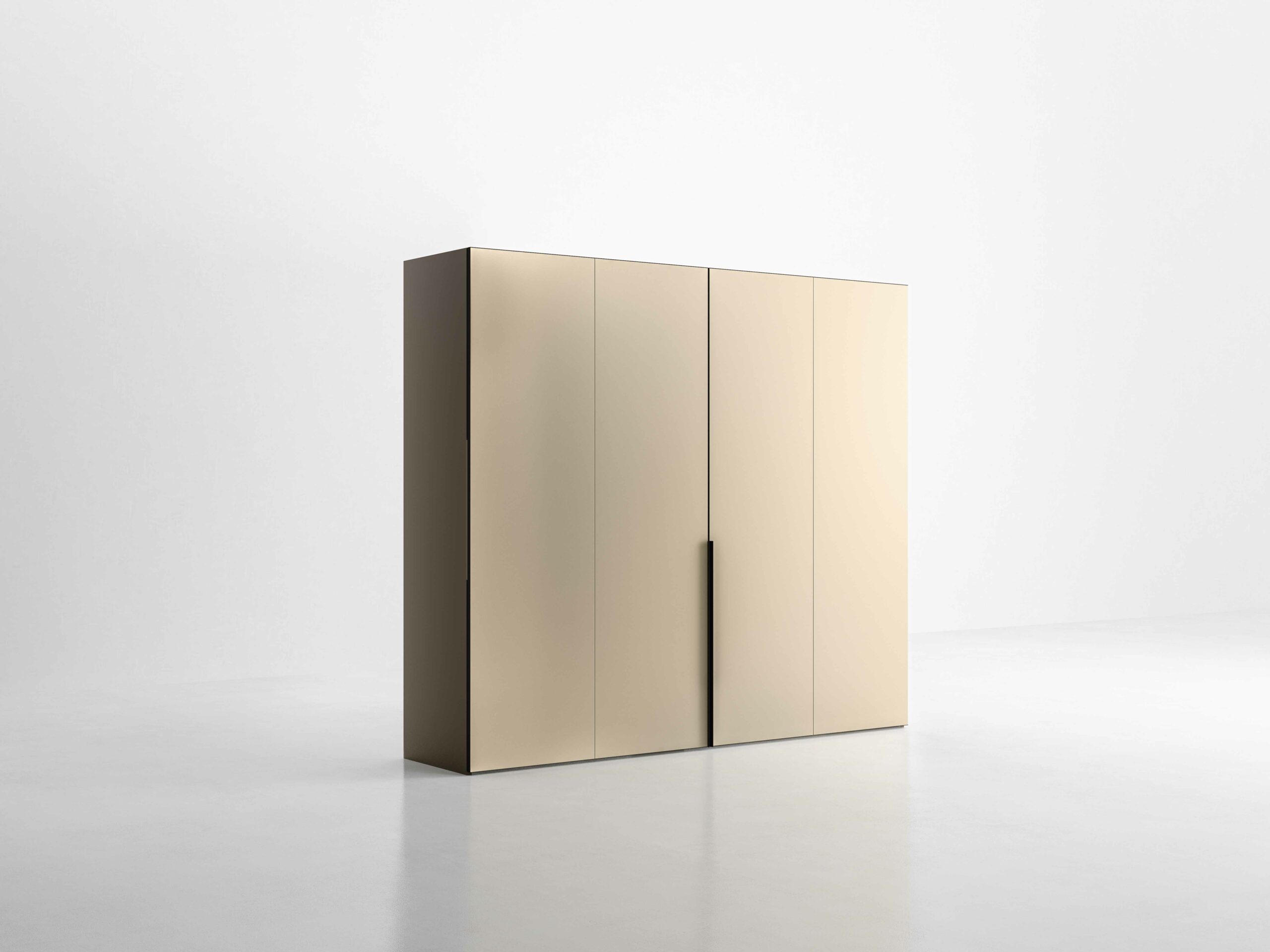 Tämä italialainen design liukuovikaappi sopii moderniin makuuhuoneeseen tai vaatehuoneeseen, jossa arvostetaan selkeitä linjoja ja rauhallista ilmettä.