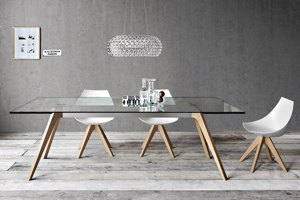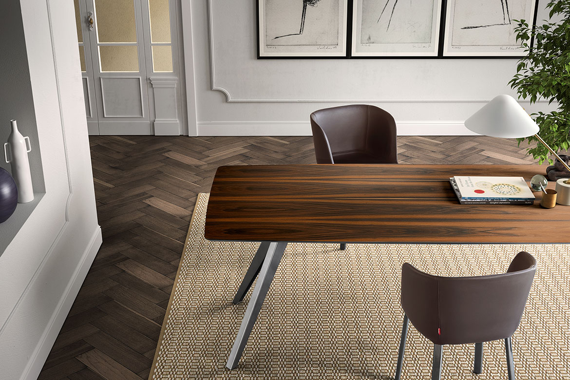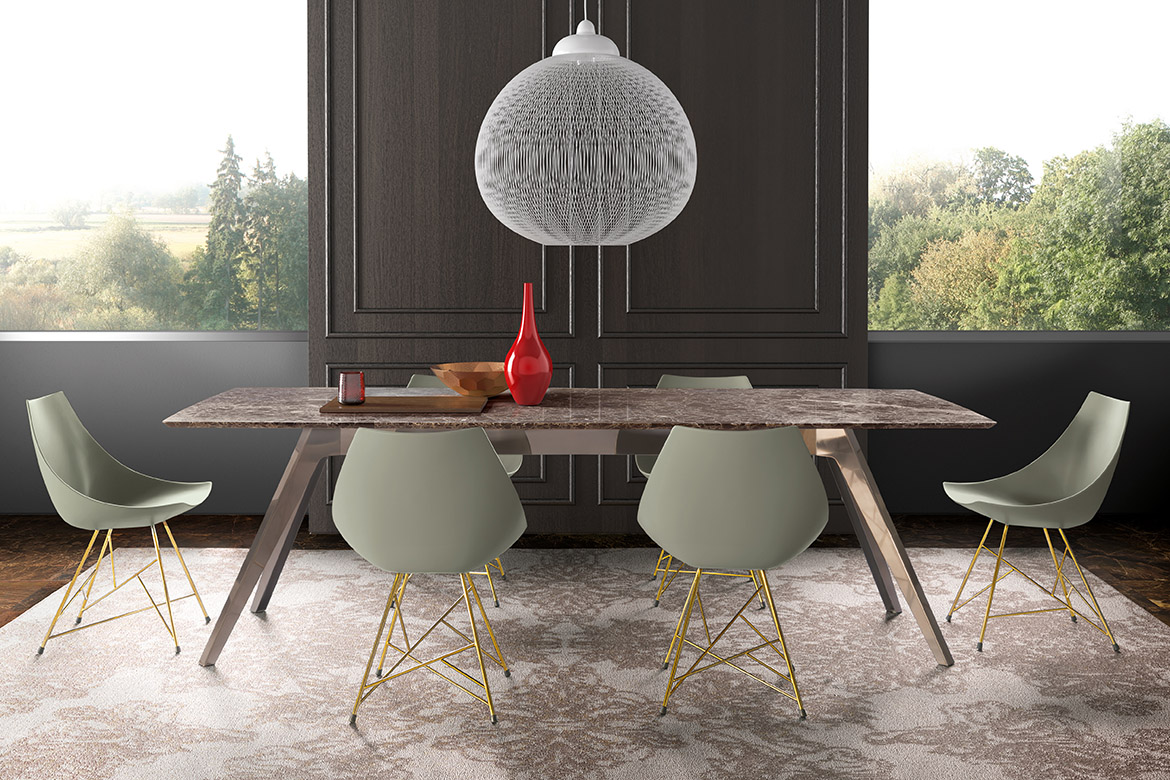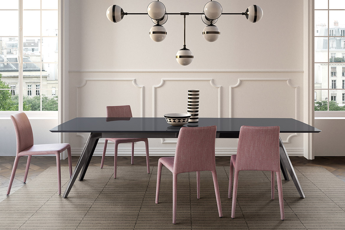 Pianca Delta -ruokapöytä, joka yhdistää elegantin muotoilun ja käytännöllisyyden. Sen kevyesti kapeneva jalusta luo harmonisen ja ilmavan ilmeen, samalla tarjoten erinomaisen vakauden ja tukevuuden.