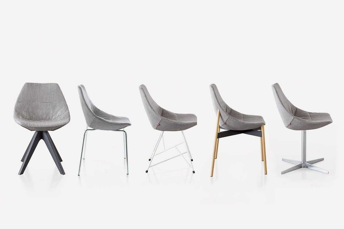 Istuin on saatavilla kahdessa versiossa; pehmustettu, kiinteällä tai irrotettavalla verhoilulla, joka on saatavilla kankaana, nahkana tai keinonahkana. Tai kovapintaisena mattamaalatulla istuimella.