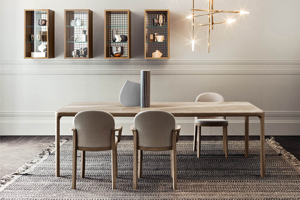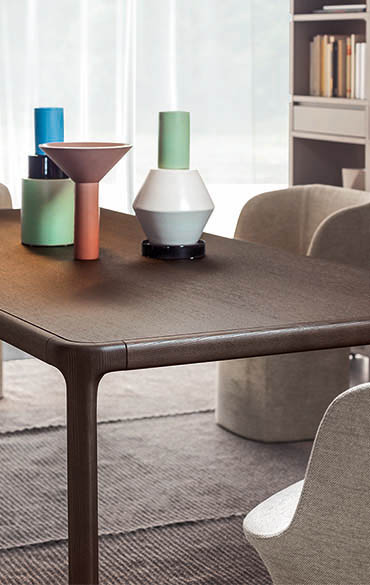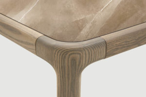 Pianca Inari -ruokapöytä, joka yhdistää japanilaisen estetiikan ja italialaisen käsityötaidon. Sen muotoilu on saanut inspiraationsa Kioton Fushmi Inari -pyhäköstä, erityisesti torii-porttien rakenteesta, jossa kaksi pystysuuntaista pylvästä kannattelee vaakasuoraa palkkia. Pöydän runko on valmistettu massiivisesta saarnipuusta, joka on huolellisesti työstetty ilman teräviä kulmia, luoden pehmeän ja saumattoman ilmeen.