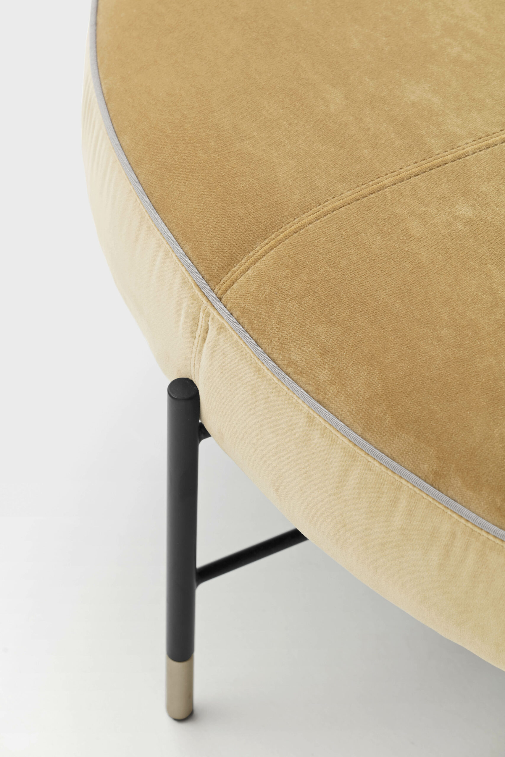 Pyöreä pehmeä rahi tuo pehmeyttä ja eleganssia tilaan. Grosgrain-kanttaus korostaa rahin muotoa ja tuo siihen hienostuneen yksityiskohdan.