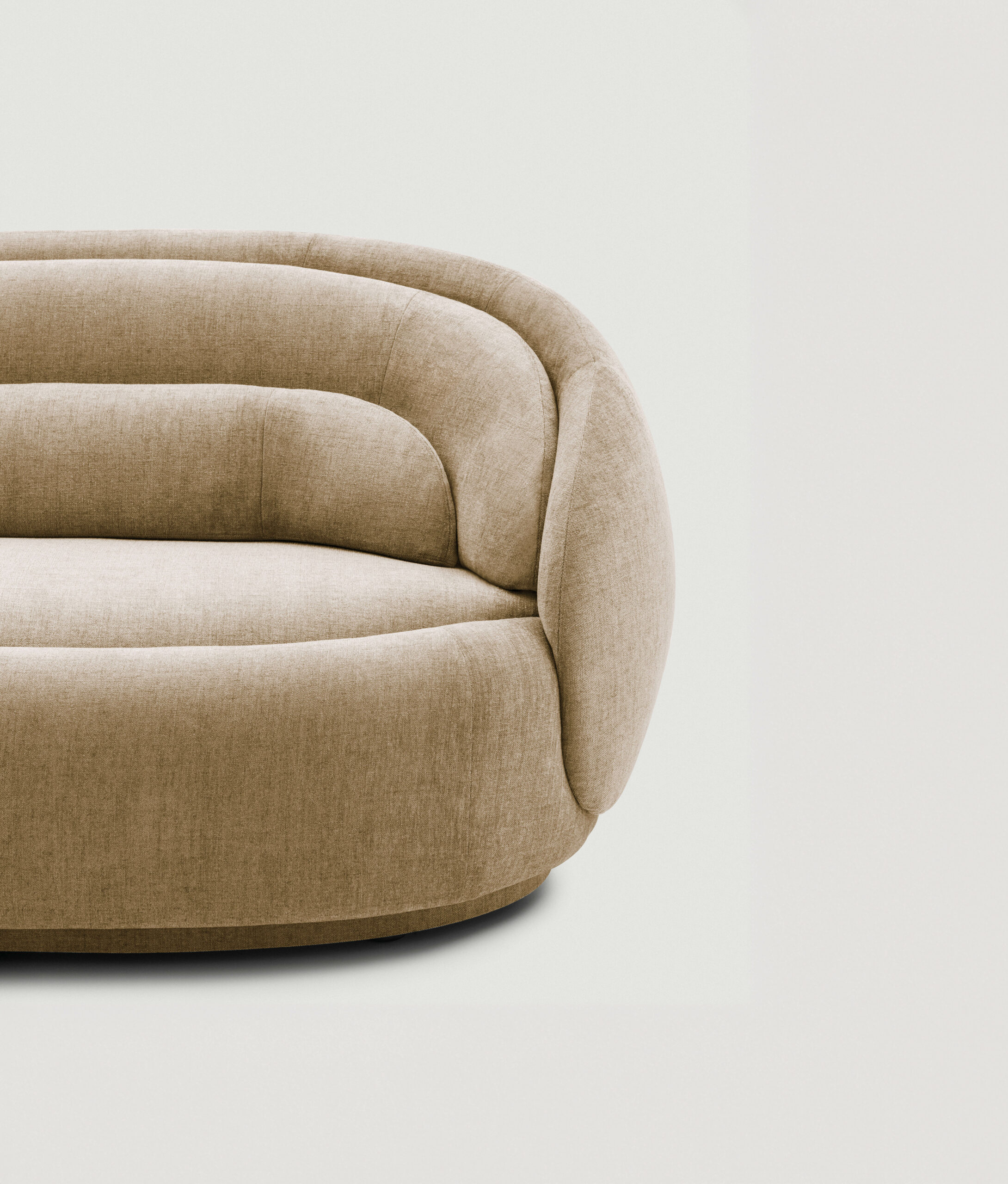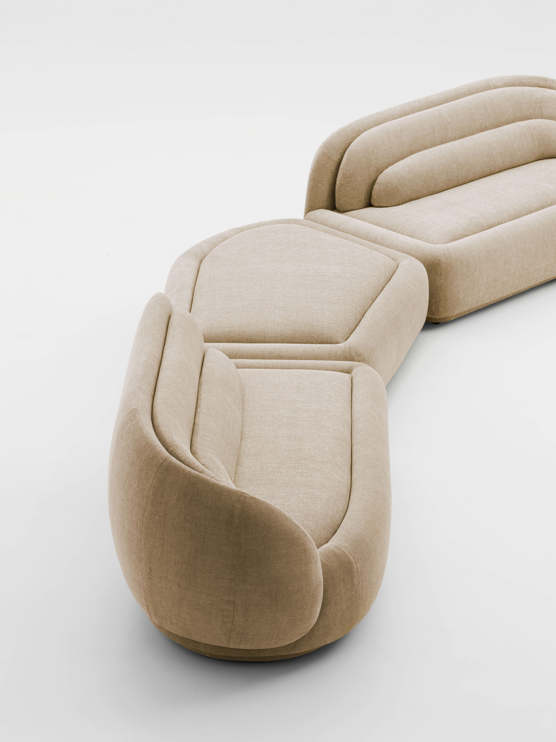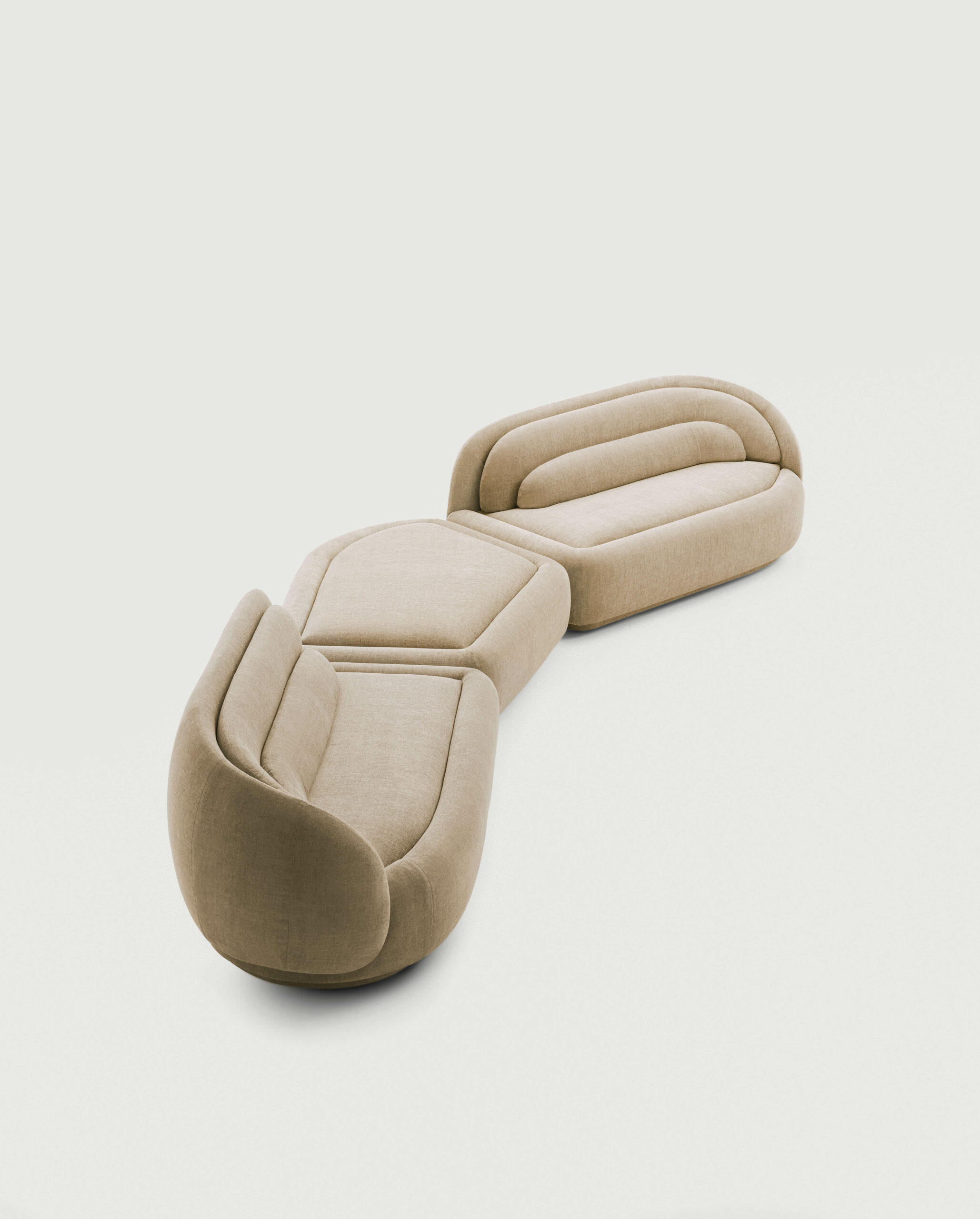 Pianca Peonia -sohvassa yhdistyy veistoksellinen muotoilu ja modulaarinen rakenne. Sen pehmeät, kerrokselliset muodot muistuttavat kukkivaa pionia, ja ne tarjoavat sekä esteettistä että ergonomista mukavuutta.