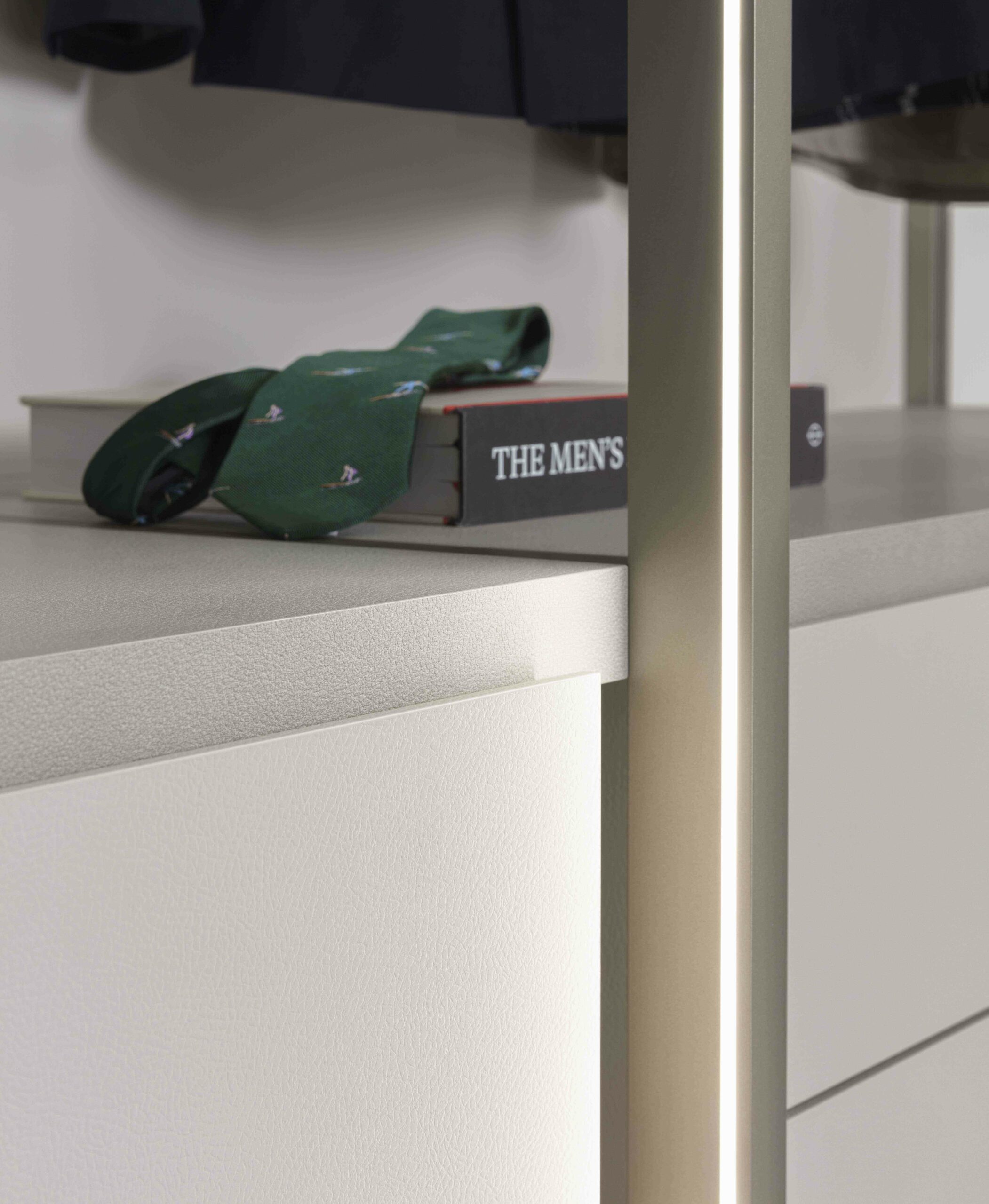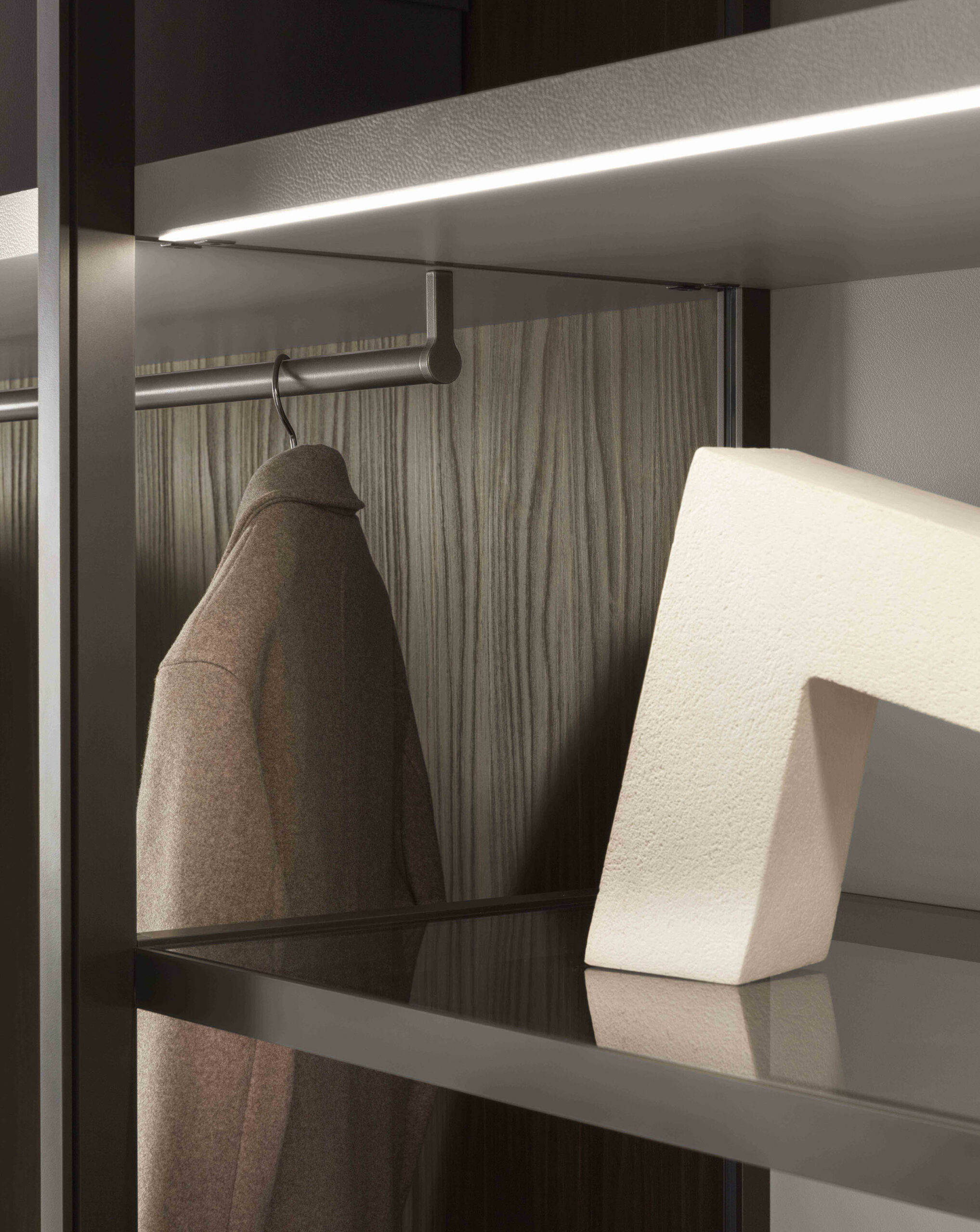 Rakenteen rytmi, viimeistellyt yksityiskohdat ja tarkkaan harkitut mittasuhteet tekevät siitä premium walk-in -ratkaisun vaativaan makuun.