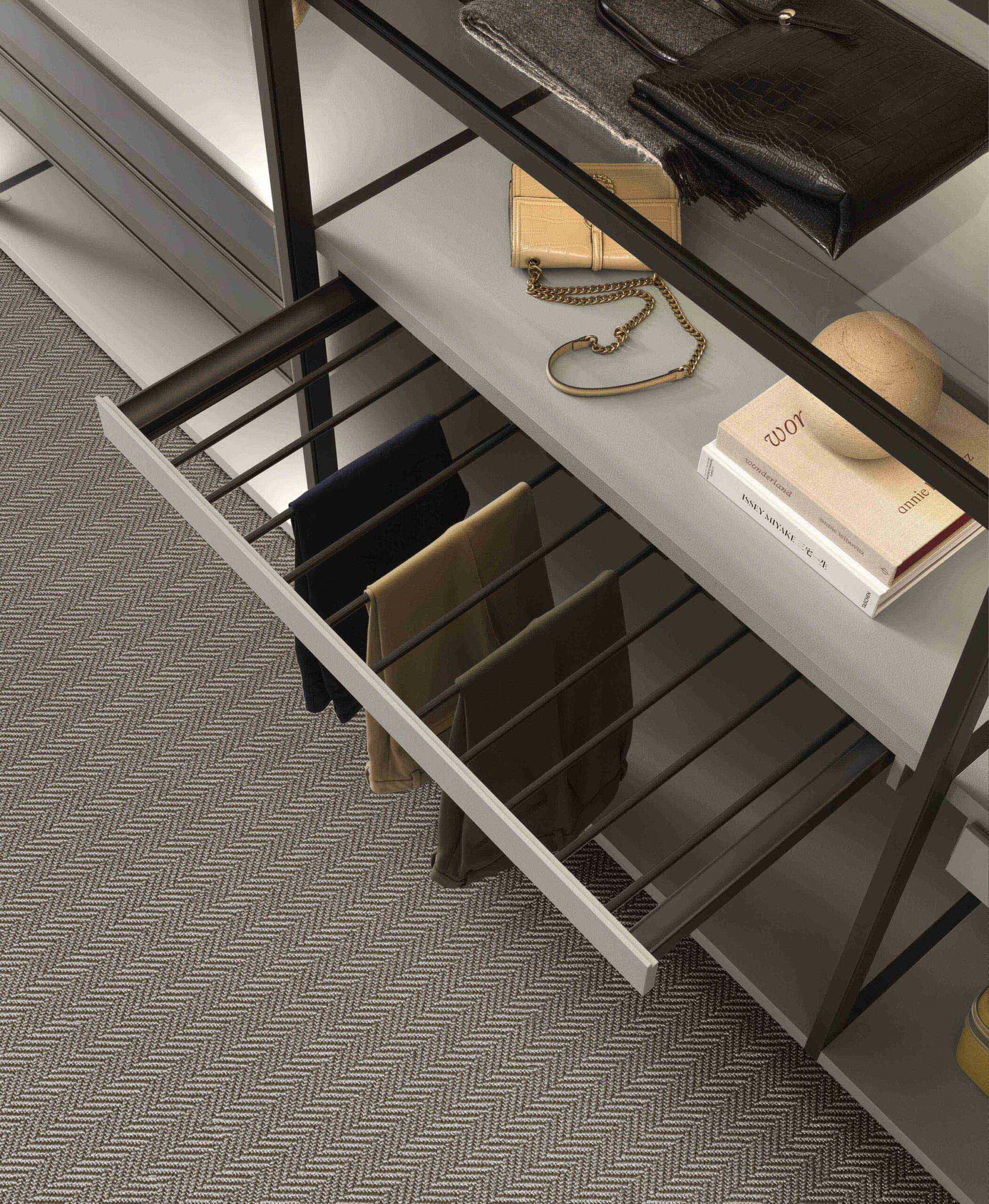 Yksityiskohtien viimeistely tekee premium walk-in vaatehuoneesta visuaalisesti yhtenäisen ja ajattoman.