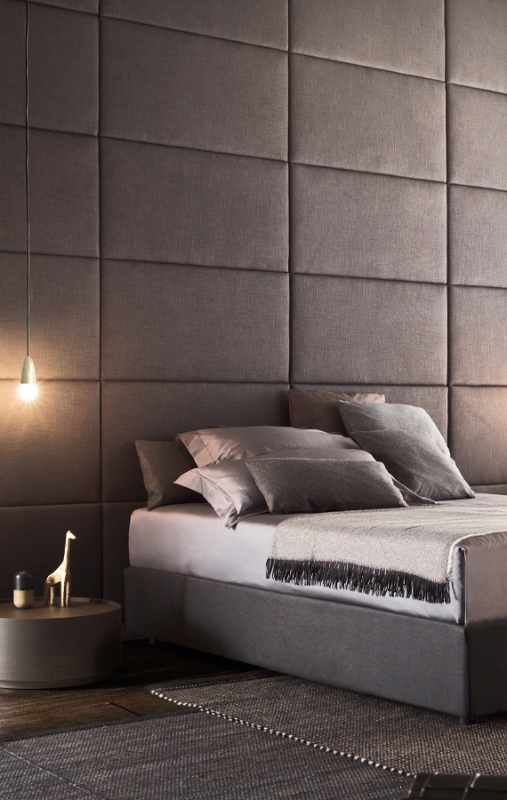 Pianca Upholstered Wall Panels, pehmustetut seinäpaneelit yhdistävät tyylikkyyden ja mukavuuden, tarjoten monipuolisen ratkaisun makuuhuoneen sisustukseen.