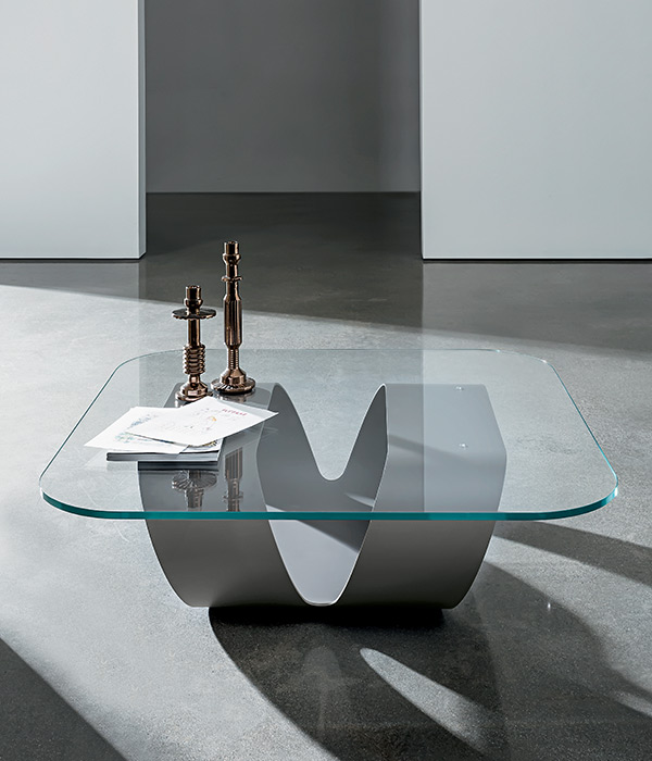 Pöydän jalusta koostuu yhdestä taivutetusta metallilevystä, joka on saatavissa eri viimeistelyillä.