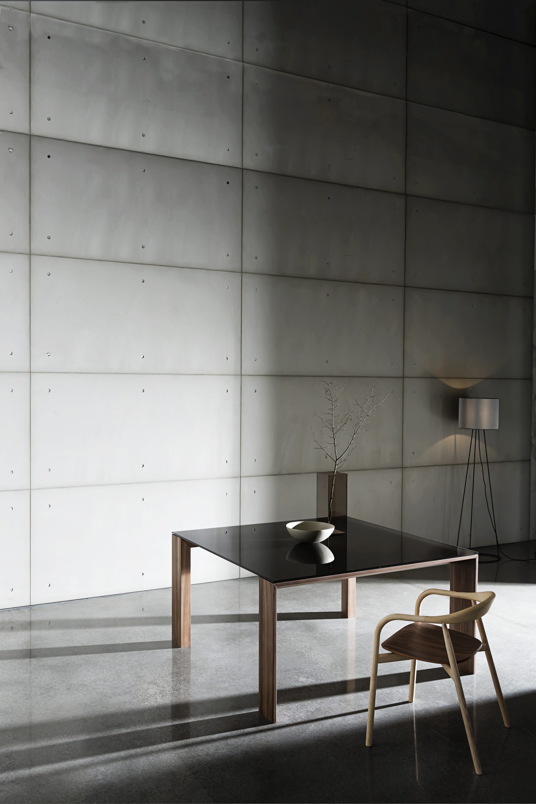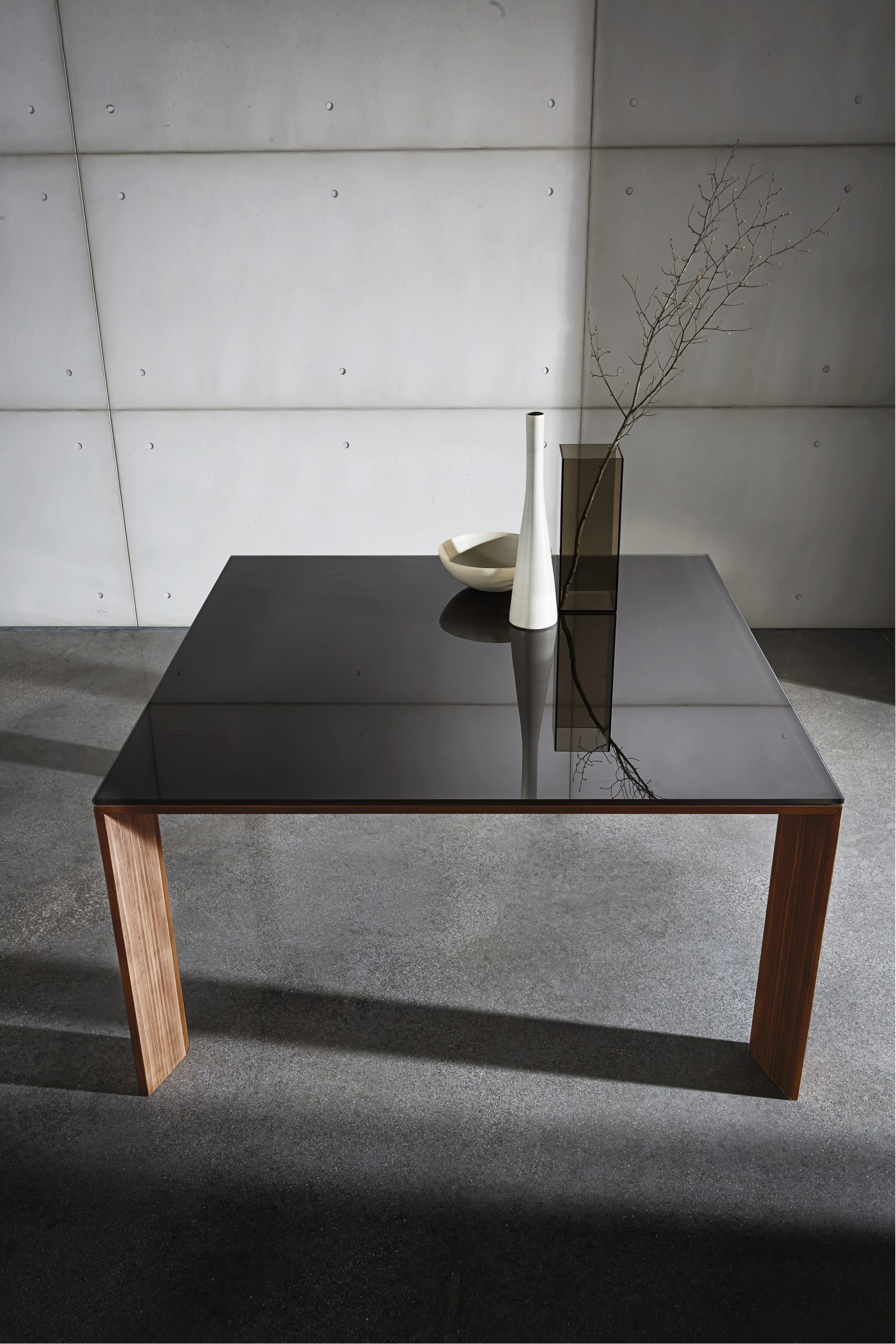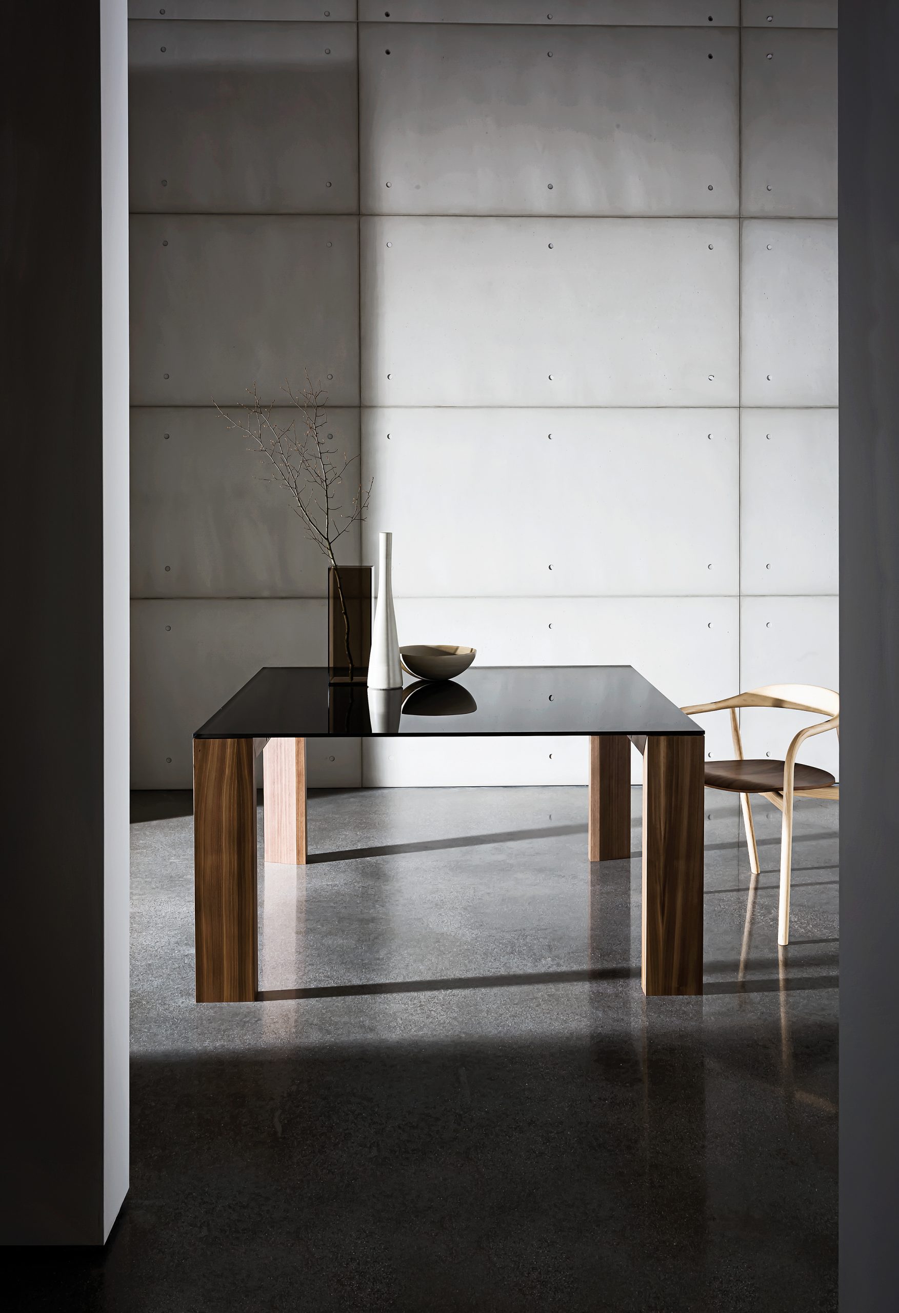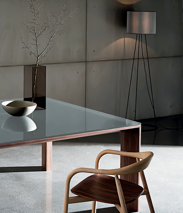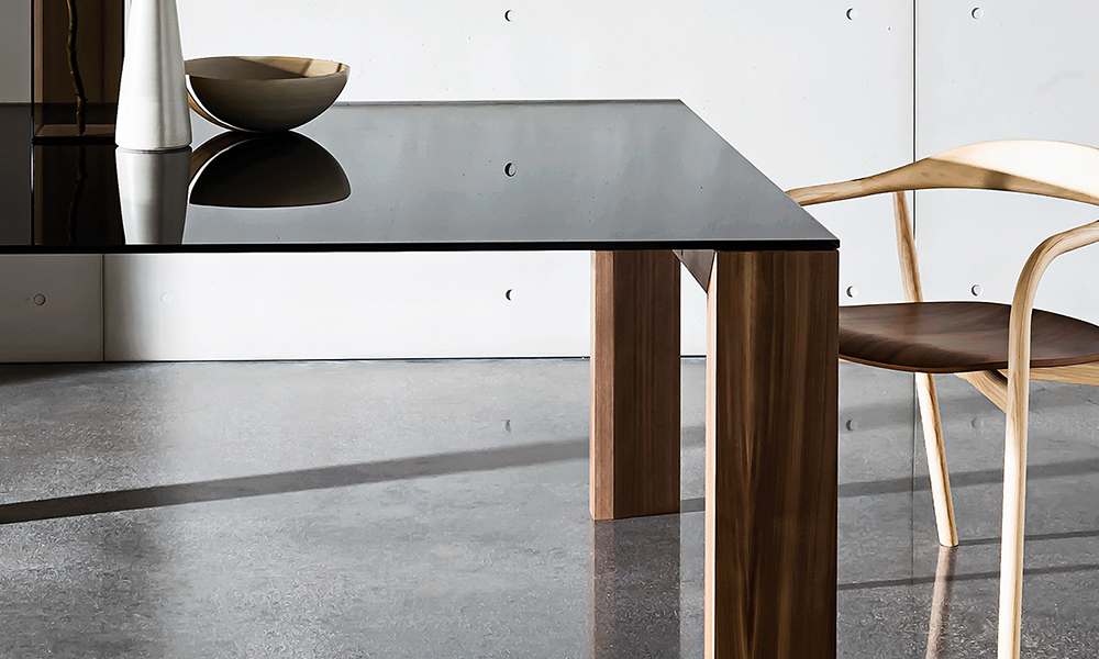 Sovet Italian Toronto -pöydässä yhdistyvät puu ja lasi tai keramiikka.