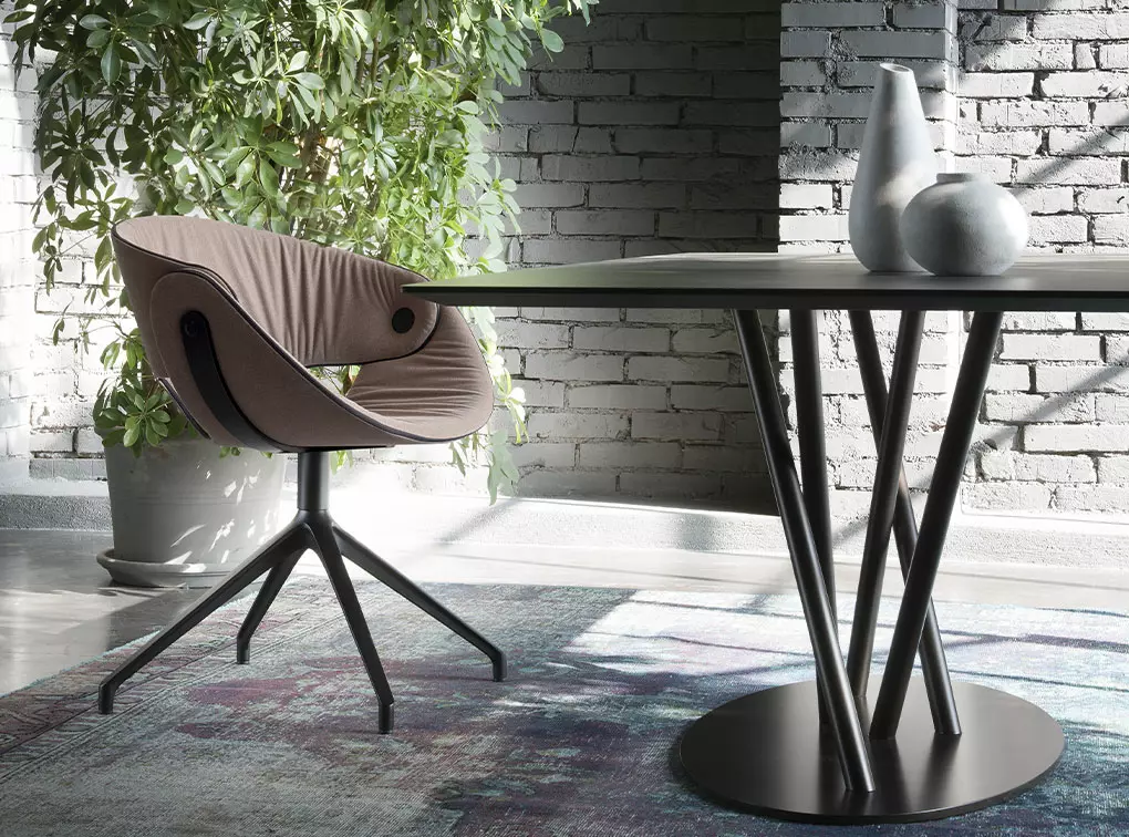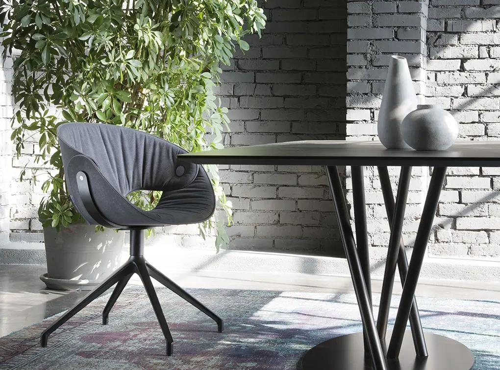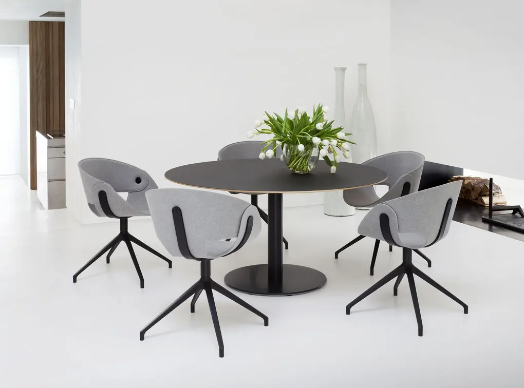 FL@T -tuoli on ergonomisesti muotoiltu tarjoamaan tukea selälle ja mukavuutta pitkillekin istumishetkille. Alumiininen jalusta tuo kokonaisuuteen ryhtiä, ja saatavilla olevat värivaihtoehdot mahdollistavat tuolin sovittamisen monenlaisiin sisustuksiin ruokailutilasta työtilaan.