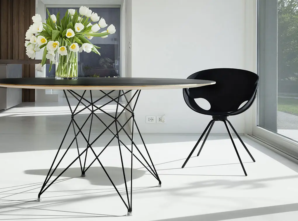 Tonon Italian FL@T -tuoli on näyttävä designtuoli, joka yhdistää teknisen innovaation ja veistoksellisen muodon. Tuolin runko valmistetaan yhdestä ainoasta joustavasta, litteästä materiaalilevystä, joka taivutetaan kolmiulotteiseksi muodoksi ilman saumoja. Lopputuloksena on kevyt, orgaaninen ja dynaaminen siluetti, joka näyttää leijuvan ilmassa.