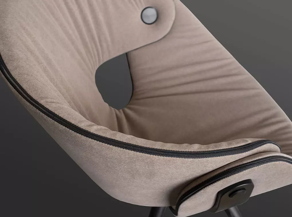 Tuolissa on useita erilaisia jalkamalleja, osa niistä pyöriviä tai kääntyviä. Verhoilussa erilaisia yksityiskohtia ja useita erilaisia kangasvaihtoehtoja.