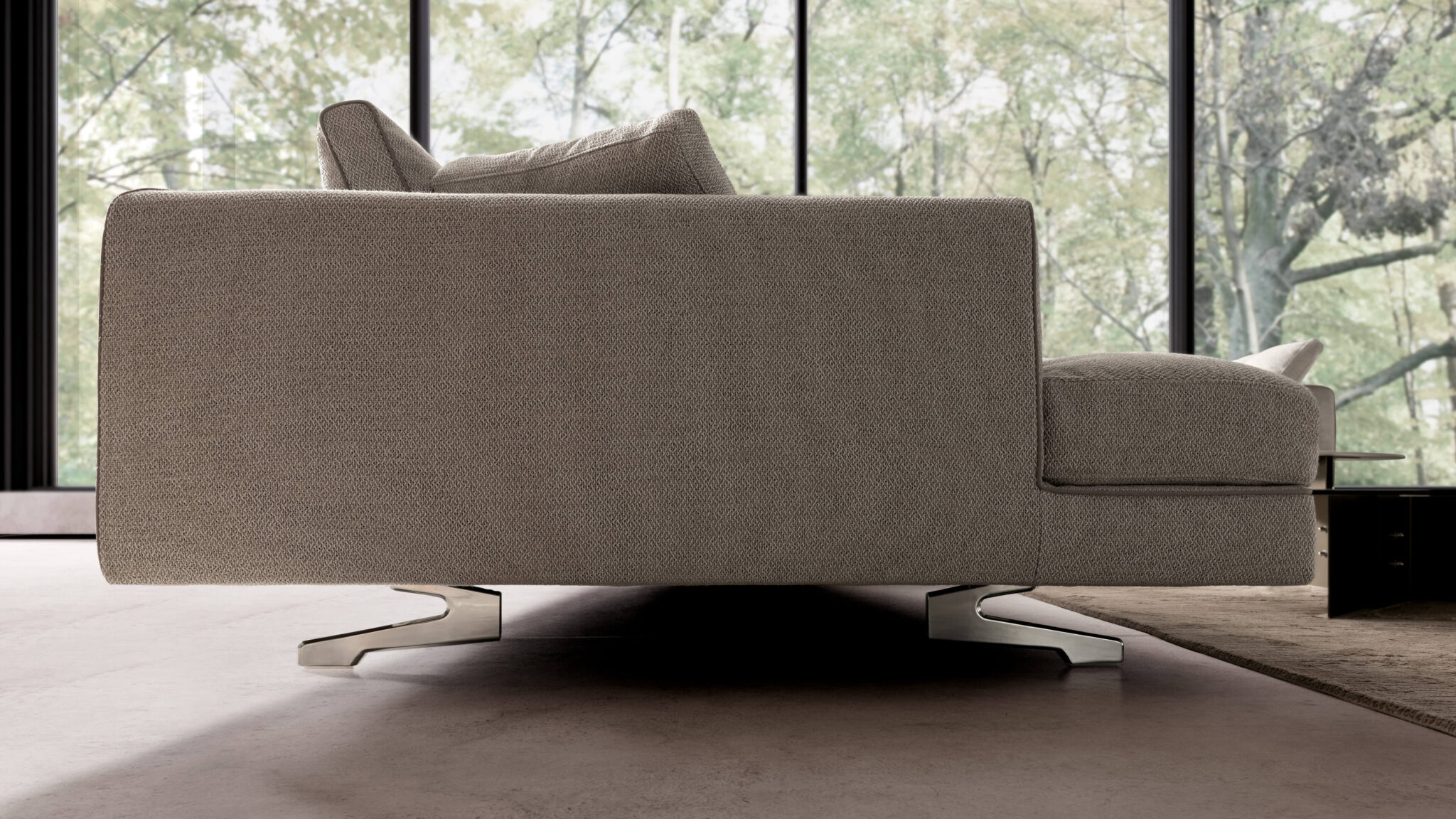 Sohvan runko on valmistettu puusta. Istuimissa on liukumattomat, toisiinsa lukittuvat tyynyt, ja selkätyynyt on täytetty höyhenillä, mikä lisää istumamukavuutta. Verhoilu saatavilla irrotettavalla kankaalla tai nahalla. Jalat saatavilla kromattuna tai mattamustan.