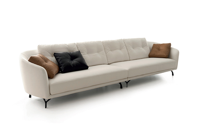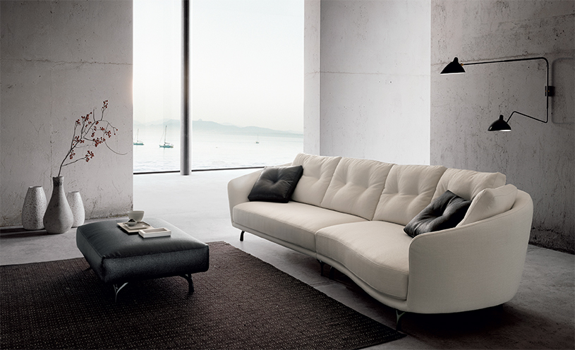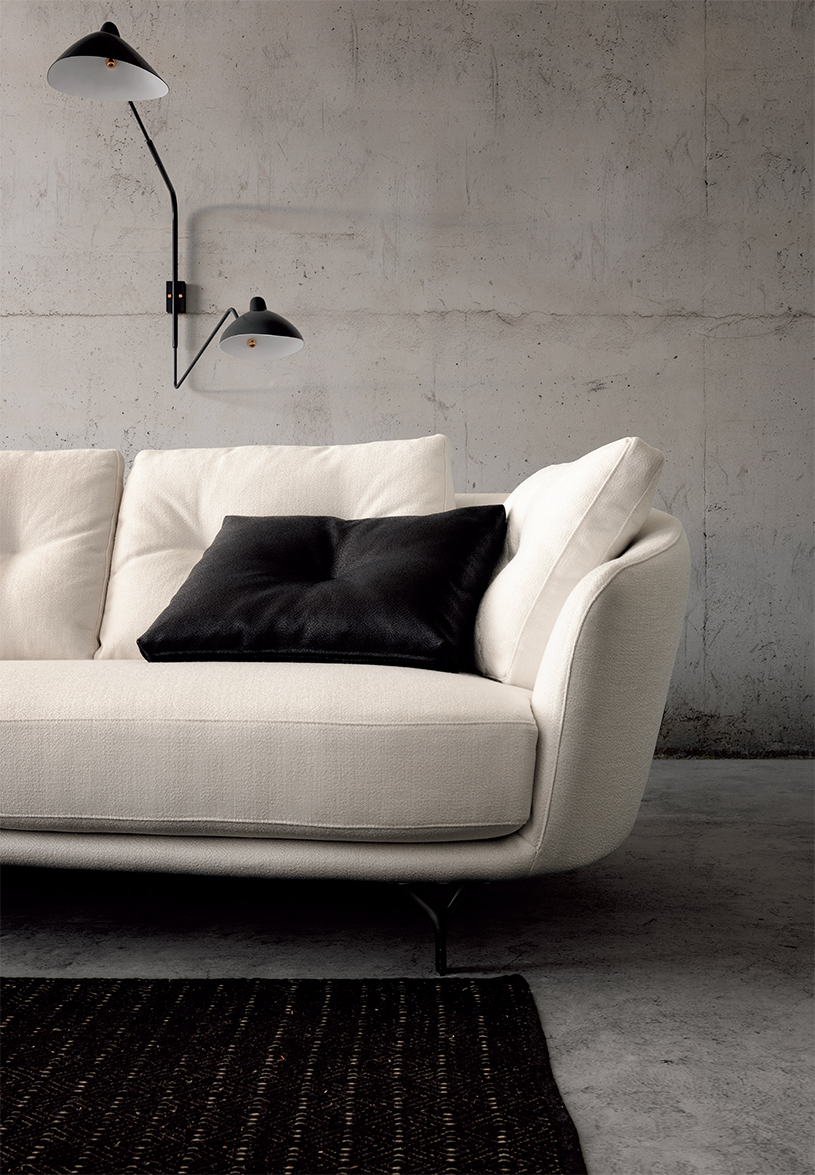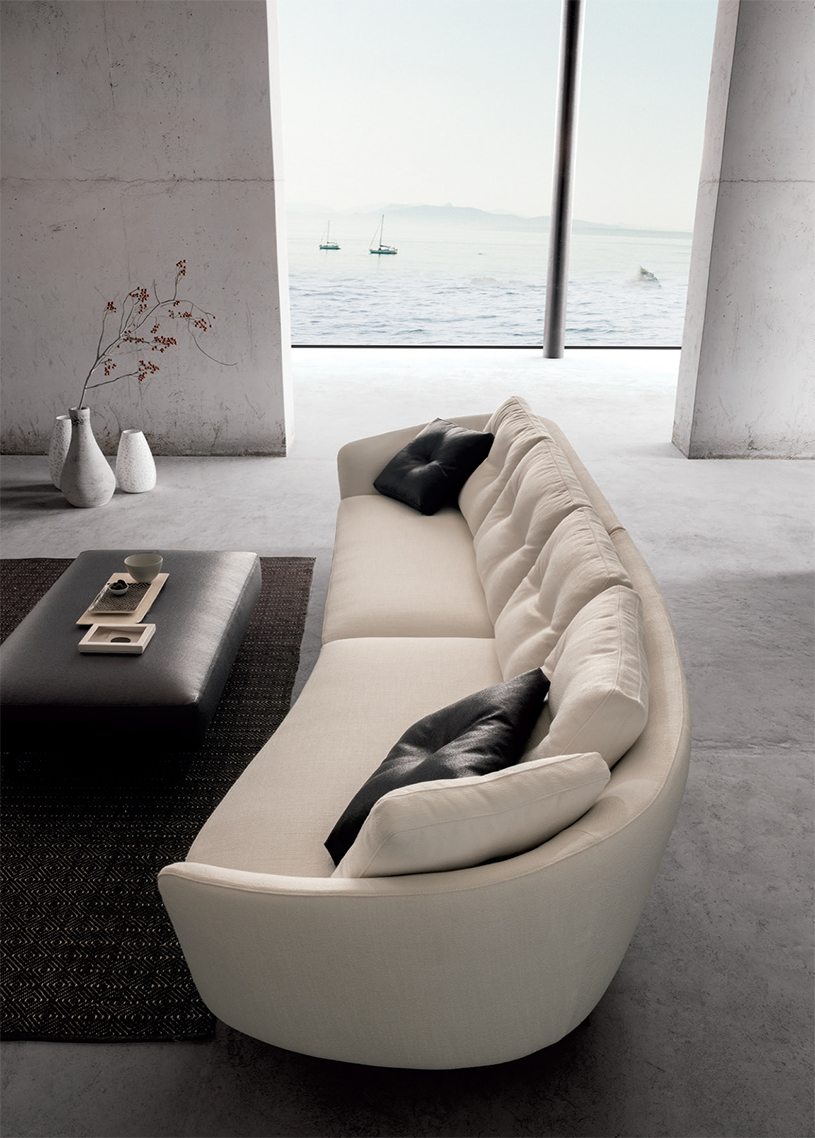 Ethos-sohva on muunneltavissa ja saatavilla useina versioina; suorat sohvat, kaarevat mallit, kulmat, chaise longue -elementit ja rahit. Lisäksi erillinen nojatuoli kahdessa koossa.