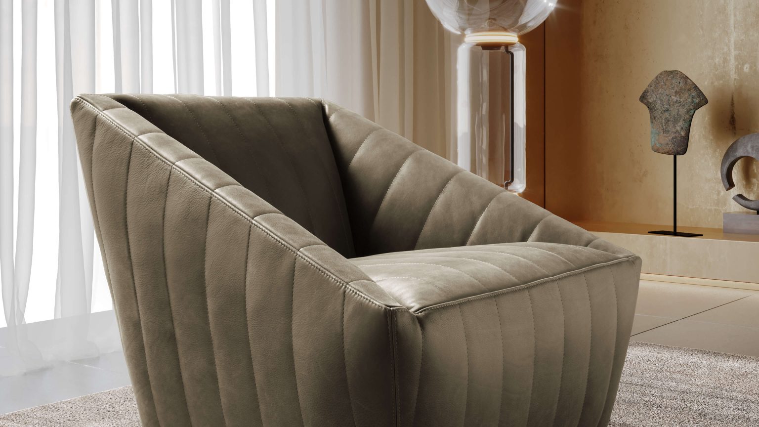 Valentini Gregory -nojatuoli on tyylikäs ja maskuliininen huonekalu, joka huokuu ylellisyyttä ja mukavuutta. Sen muotokieli on selkeä ja elegantti, yhdistäen pehmeästi kaareutuvat linjat ja tarkan geometrian. Nojatuolissa on syvä istuin, korkea selkänoja ja tukevat käsinojat, jotka tarjoavat erinomaisen ergonomian rentoutumiseen.