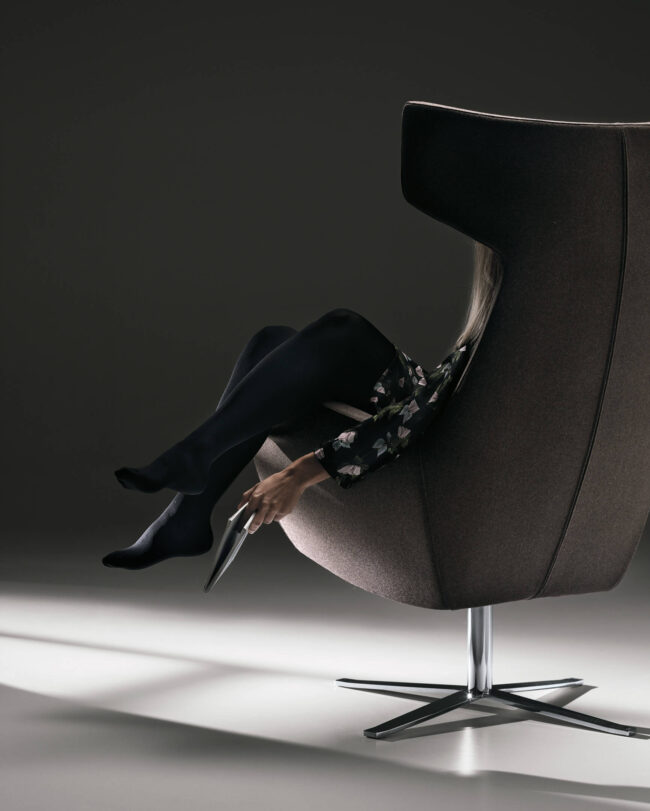 Valentini Iris on korkeaselkäinen design-nojatuoli, joka yhdistää modernin estetiikan ja akustisen mukavuuden. Sen korkea, verhoiltu selkänoja tarjoaa yksityisyyttä ja äänieristystä, tehden siitä ihanteellisen valinnan myös auloihin tai avotoimistoihin.